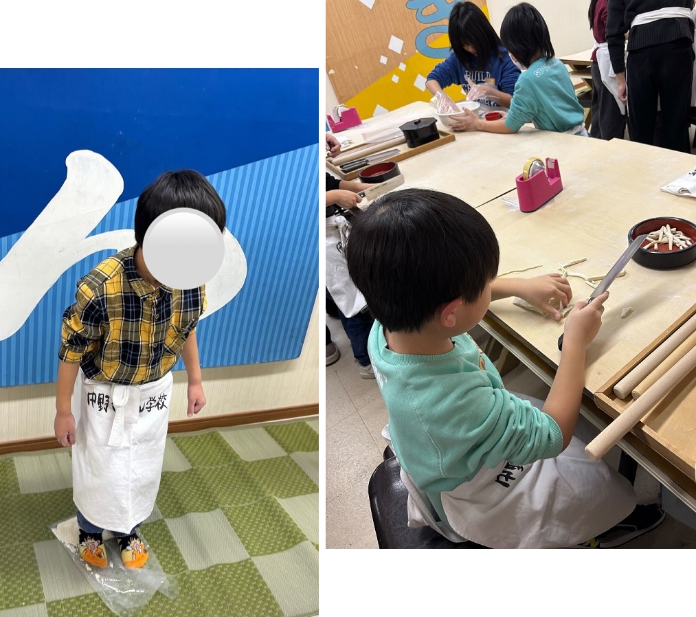 同じ材料、同じ手順でも、子どもたちが作るうどんは実に個性豊かです。力いっぱいこねてコシの強い生地に仕上げる子もいれば、丁寧に丁寧に形を整えながら進める子もいます。太めに切って「田舎うどん風」にする子、細く揃えて「職人さん風」を目指す子など、工程の中にそれぞれの個性が見えました。