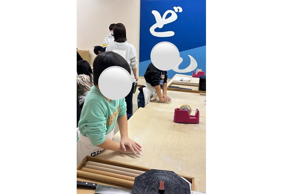 作業の進め方にも個性が表れます。生地を均一に伸ばすことに集中する子、リズムよく踏む工程を楽しむ子、切る作業にこだわって何度も調整する子がいました。