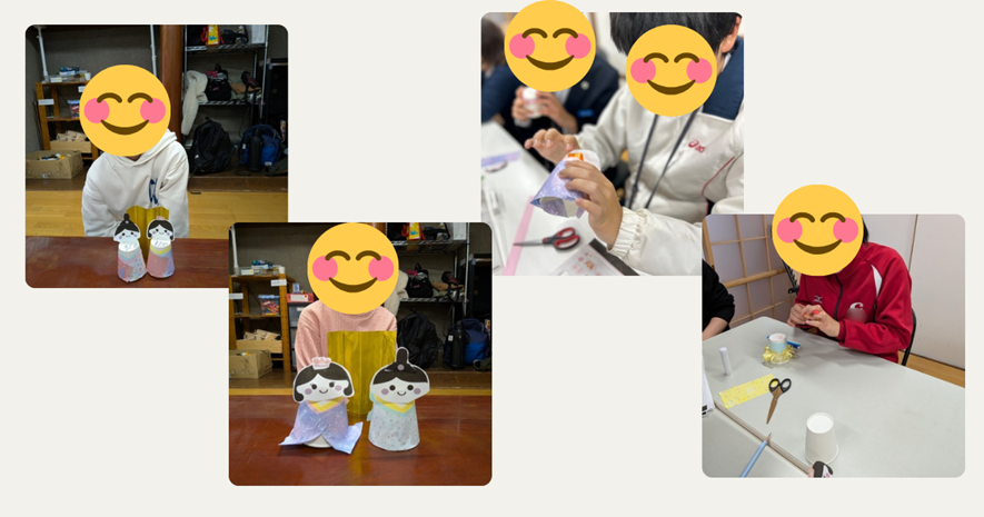 今回は、ひな祭りに向けて ひな人形作り の活動を行いました。